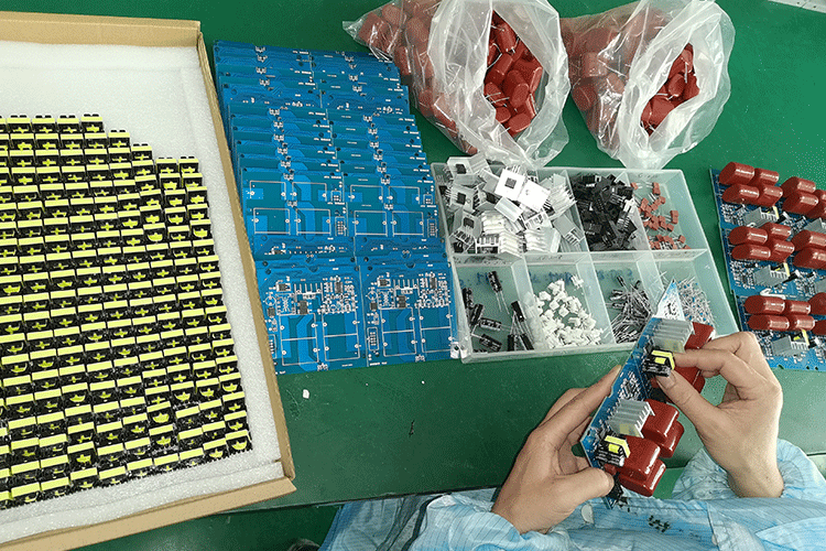After all connectors are correctly inserted, the circuit boards enter the manual soldering stage.